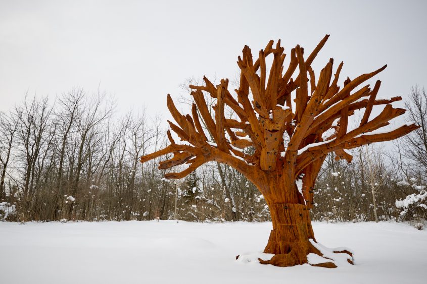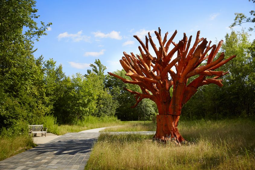 Au Frederik Meijer Garden and Sculpture Park (Michigan, États-Unis), l’exposition Ai Weiwei (janvier-mars 2017) nous donne l’occasion d’aborder la représentation de l’arbre dans son œuvre. Ai Weiwei (1957- ) est la figure majeure de la scène artistique indépendante chinoise. Artiste polyvalent (architecte, photographe, sculpteur, performeur…), symbole de la dissidence, son art engagé prend souvent des objets du quotidien ou/et des médiums de communication pour atteindre un public plus large. Son œuvre, entre autre, revisite le concept de « ready-made » de Marcel Duchamp en repensant des éléments originaux qu’il n’a pas lui même créés avec une esthétique contemporaine et une pensée politique.