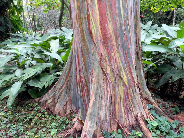 Burle Marx plante comme il peint, par aplat de couleurs : des eucalyptus éblouissent par le faste de leurs couleurs et les racines d’arbres gigantesques imposent leurs dessins abstraits.