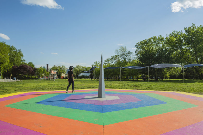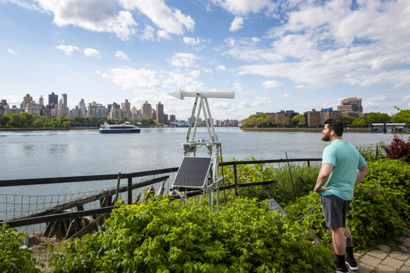 Chronos Cosmos: Deep Time, Open Space transforme le Socrates Sculpture Park en un portail vers l’univers en présentant des œuvres d’art qui mettent en relation l’espace, le temps, et la matière avec les entités célestes et les processus terrestres. Dans l’espace en plein air du parc de Long Island City, l’exposition utilise différentes échelles pour mettre l’univers en contexte et créer des points de connexion entre l’espace et le temps.