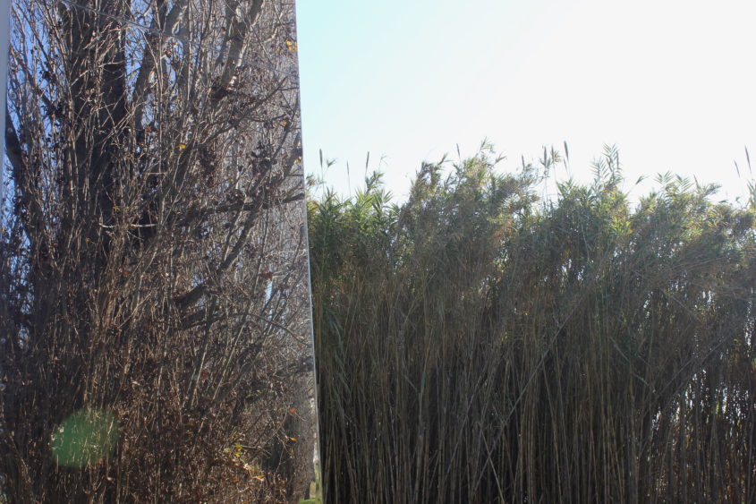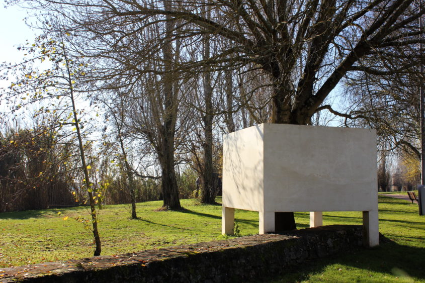 At one end of the park lined with high reeds, Pedro Cabrita Reis erects a powerful block of granite in the surrounding vertical environment, playing with appropriation and references to historical and architectural shapes. Close by, the Almourol Castle and its dungeon defy the surrounding elements, and so does Cabrita Reis’s sculpture Castelo (Castle) (2012). In the same fashion, the artist brings back the old marks and symbols of architectural and urban powers. After all, verticality is still the perfect expression of power.