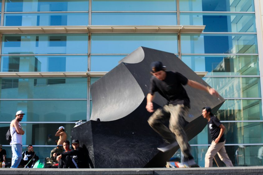 An irregular banging noise will let you know that you are about to arrive at the MACBA, Barcelona’s contemporary art museum. For the past few years, the Plaça del Àngels, which faces the museum, has been taken over by skaters, at times making it even difficult for pedestrians to walk around. But what a pleasure to see so many people “out doors”! It is a constant flow of performances, choreographies, free movements, soaring into the air…