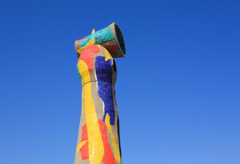 Miró’s last monumental work, Dona i ocell, was inaugurated a few months after his death and overlooks the Miró Park since 1983. This bright and proud seventy-two-feet high sculpture was commissioned by the city of Barcelona to Miró who decided to offer two other works on top of this one: two mosaics, one on the Rambla, and one on the exterior wall of El Prat airport Terminal B (Barcelona). Despite the restoration work, which makes the immediate perimeter of the sculpture inaccessible, we do recommend you circle around the sculpture to fully appreciate it and grasp the artist’s desire to combine masculine and feminine, to play with color and light, to cut out the sky and to let your imagination flow…