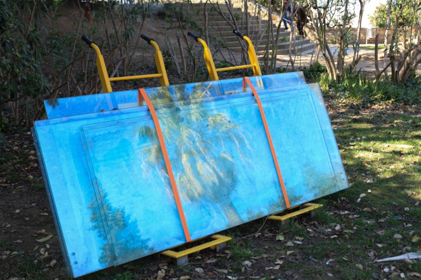 Stand facing the entrance and look to the left. On the wall that separates the museum’s grounds from the rest of the city, you will find Chillida’s first monumental mural. Although discreet, the location is key, because this particular wall was, according to the artist, an element of isolation rather than connection between the museum and the city. By choosing to place his mural at this strategic spot, he wanted to create an osmosis between the art center and the urban environment.