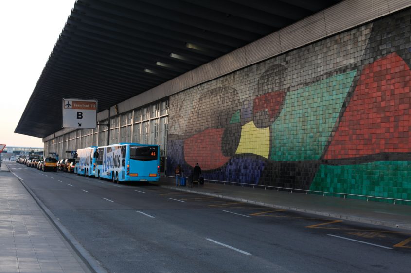 Before flying off to new destinations, take a look at the monumental mosaic on the wall of Terminal B. Created with Miró’s friend Josep Llorenç Artigas, the 160-feet long and 32-feet high mural is made of 4,865 sandstone tiles and weighs approximately 35 tons! Aeroport la benvinguda a la gent que arriba per l’aire**: the mosaic was installed here to greet air travellers, coming or leaving.