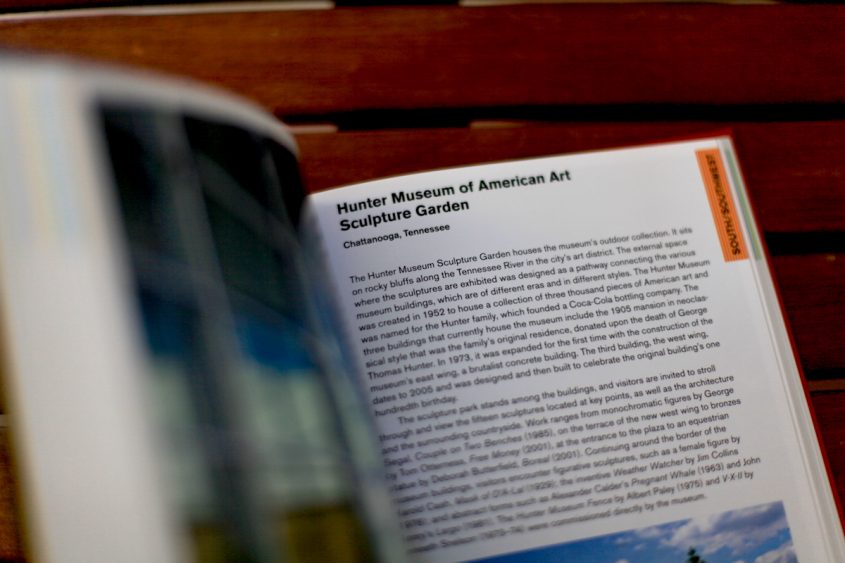 A much lighter guide, size and content wise, structured around sculpture parks and gardens located in the United States. Divided into three chapters, Leisure Spaces, Leaning Space and Collectors’ Space, each site is presented through a general description and several mid-size illustrations. The United States is divided into four maps defining four geographical areas: West, Midwest, South West and North East, which makes it easy to locate the fifty-five sculpture parks and gardens presented in the book.