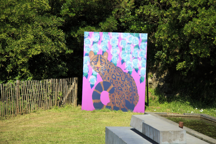 The itinerary is punctuated by a series of paintings by Laure Mary-Couégnias, installed directly on the ground, representing animals posing in a lush and flowery environment. Each painting explores a moment of a love story, from vigorous passion to peaceful union, from first encounter to separation: an invitation to explore one’s own story.