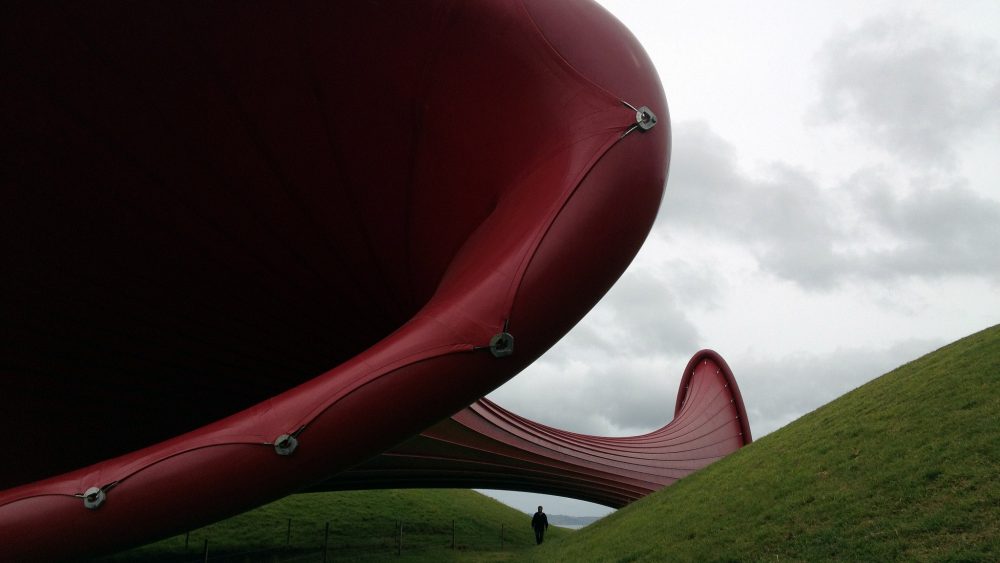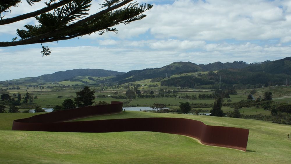 Northern New Zealand. At about 30 miles from Auckland, Gibbs Farm sculpture park spreads out on about 1,000 acres of land belonging to New Zealand businessman Alan Gibbs, founder of the amphibious vehicles company Gibbs Sports Amphibians Inc. Works of art by more than twenty international artists are displayed on this vast hilly land overlooking Kaipara, one of the Southern Hemisphere’s major harbors. The works are monumental and easily visible by satellite: Anish Kapoor’s Dismemberment, Site 1(2009), a gigantic membrane installed in between two hills; Richard Serra’s Te Tuhirangi Contour (1999-2001), 843 feet of steel winding through the property. New Zealand grazing sheep are part of the picture and particularly enjoy taking a rest on Sol LeWitt’s Pyramid (Keystone NZ) (1997).