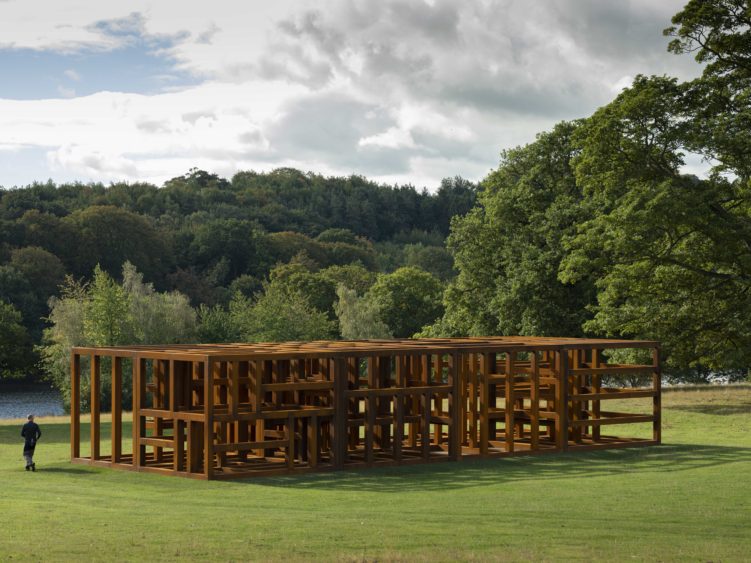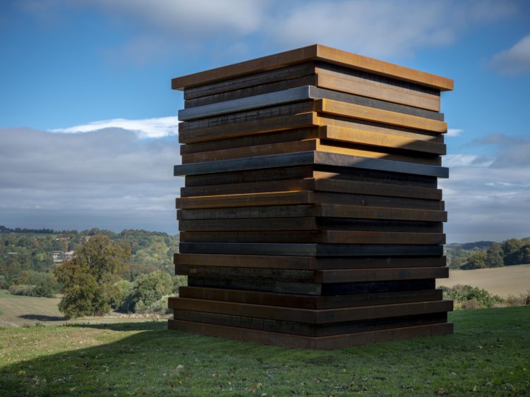 The Yorkshire Sculpture Park (YSP) presents a monographic exhibition on Sean Scully: the largest exhibition of the artist’s sculptures ever presented and the first one, in England, that combines his sculptures and his paintings. Sean Scully explores the notions of abstraction and landscape, whether in his aluminum paintings, his paper artworks or his monumental sculptures, which simultaneously invert and assert their materiality. During the past fifteen years, Sean Scully has been focusing more on sculpture, working with steel and stone. In the Yorkshire Sculpture Park, he installed several new works specifically created for the exhibition, including Wall Dale Cubed (2018), made of 1,000 tons of Yorkshire stone extracted from a local quarry, and Crate of Air (2018), an angular Corten steel structure that seems to frame the landscape in multiple ways.