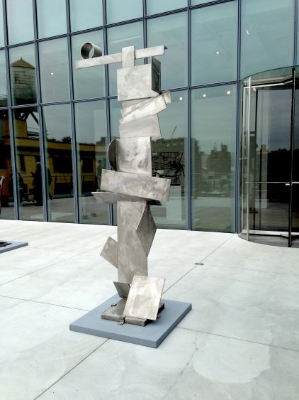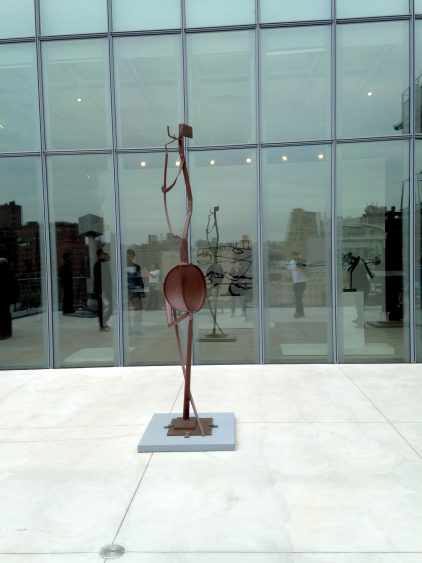 From the get-go, the museum seems to be turned towards the outdoors. In the entrance hall, natural light flows in through the tall glass walls. The inaugural exhibition, America Is Hard to See, reexamines the history of American art from the beginning of the 20th century to the present, and comprises a selection of more than six hundred works, all drawn from the collection. The visit of the exhibition starts on the last floor, where wide glass windows facing the east and west offer panoramic views of the city. To the west, a large sitting bench allows visitors to take a break and gaze at the Hudson River and New Jersey. To the East, on four floors, wall to wall glass windows open up on terraces displaying works by some of the most emblematic American sculptors such as Robert Morris, Tony Smith, David Smith or Joel Shapiro.