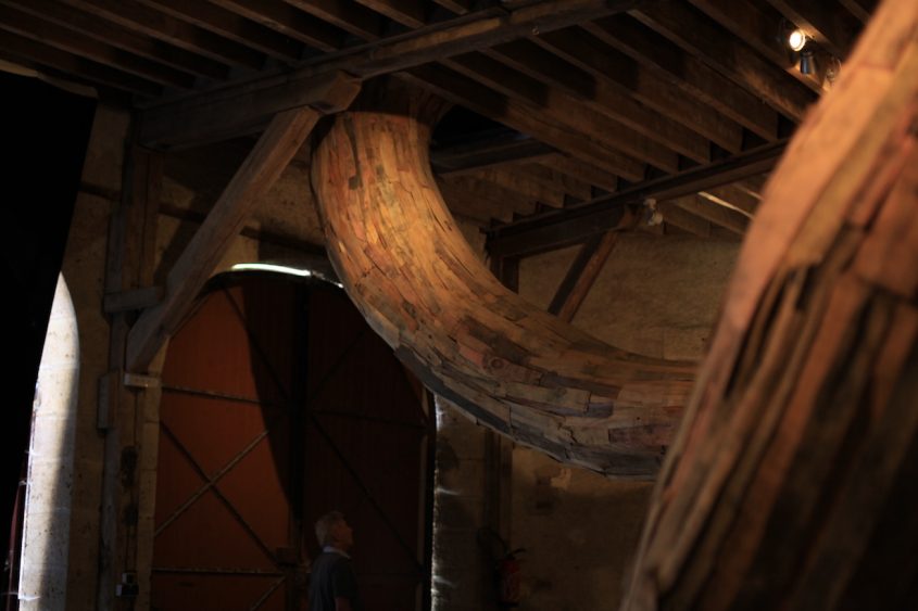 The castle and its annexes (Stables, Hayloft Galleries, Bee Barn) have been transformed into new spaces for contemporary art. They offer photography exhibitions on landscape and nature (Andy Goldsworthy, Jean-Baptiste Huynh, Luzia Simons, Davide Quayola and Han Sungpil), a video installation (Davide Quayola) and in situ interventions such as the twelve gorgeous stain glass panels by Sarkis (originally seventy-two) which take over the abandoned spaces of the castle, or the mysterious Momento fecundo, by Brazilian artist Henrique Oliveira.