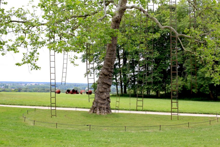 The Loire River gently flows, down on its way to the estuary: a calm, smooth movement, only fragmented by the rocks and vegetation under the bridge connecting the towns of Onzain and Chaumont-sur-Loire. On this early July Monday, at the foot of the Chaumont castle, the banks of the river display a palette of greens, yellows, blacks, browns and grays. This is my first time at the Domaine.
