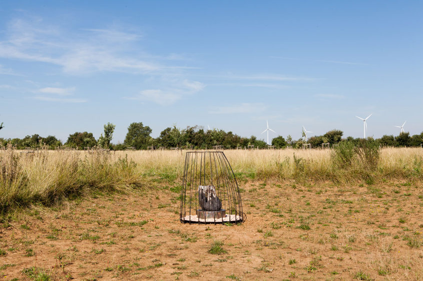 For the eighth edition of the contemporary art biennial of Melle, curators Chloé Hipeau-Disko and Frédéric Legros have gathered about 30 artistic proposals in several unusual places, populating the city with outdoor artwork. Ghada Amer will present his memorial Love Grave (2003-2018); Yoko Ono will display her installation Riverbed/Stone Piece (2015-2018), for the time outdoors; Gloria Zein will take over the town’s music kiosk with Faire partir l’ombre (2018) and will install a sculpture for the sheep, du vertige de la contingence (2018), in a field. Specifically designed for the biennial and tied to Melle’s minting past, Clemens Botho Goldbach’s 50 Euruin (2018) stands in front the Saint-Hilaire church: two wood sculptures, interpretations of the fictive architectures represented on 50 euro bills.