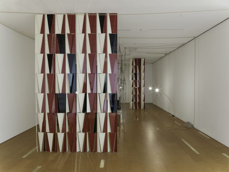 An exhibition of new work by Leonor Antunes is also currently on display. Like Serra’s Sequence, the pieces in New Work: Leonor Antunes beg for navigation by viewers. Hemp rope, nylon yarn, and partitions hang from the ceiling in a single room lit by sculptural lamps. The installation resides in a rare corridor not filled with natural light, and the room’s dimness teases viewers, suggesting that this space might not even be open to the public. One must find out for him or herself.