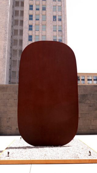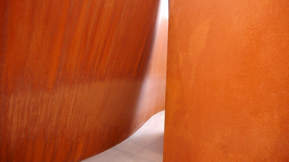 The weathering steel sculpture is hard and industrial, and the rust recalls urban decay. But walking through the enormous maze is an experience almost like being in nature. The walls mimic those of a tight cavern and the iron oxide resembles the sandstone of the famous Antelope Canyon in the Navajo Nation. When traversing the colossal sculpture’s path, everything disappears but the steel and the small path ahead. It is brief, but it is like a meditative hike.