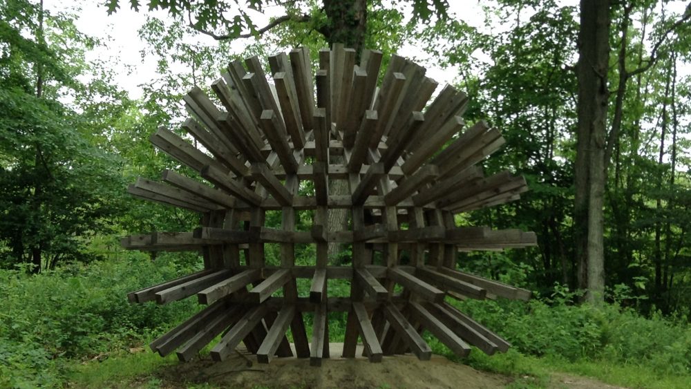 The Fields Sculpture Park started in the 90’s with an important long-term loan by New York art dealer André Emmerich (1924-2007). But works at Omi do not enter a permanent collection: on a rotation basis, about ten new sculptures are presented every year for a two to five-year period. Curated by Nicole Hayes, the program intends to present experimental and monumental works in a unique natural environment. Although artists-in-residence are not asked to produce works for the park, they are sometimes invited back for site-specific projects.