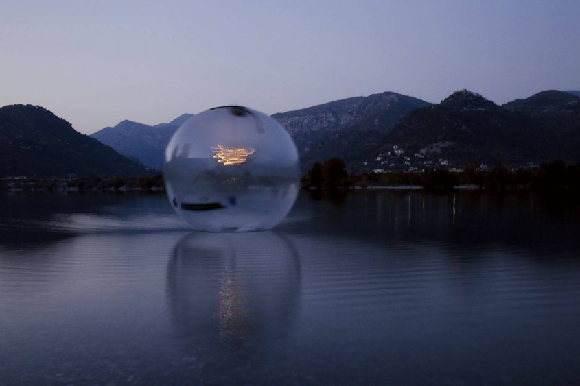 - Gonflable, contrepoids, transmission scooter électrique, lustres à pampilles, collecteur tournant, chaîne de moto, vingt-quatre volts, this installation with a rather strange title by artist Vivien Roubaud will be presented by the Galerie In Situ at the Tuileries gardens,