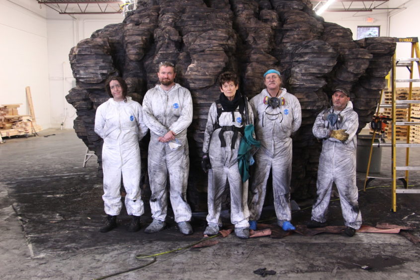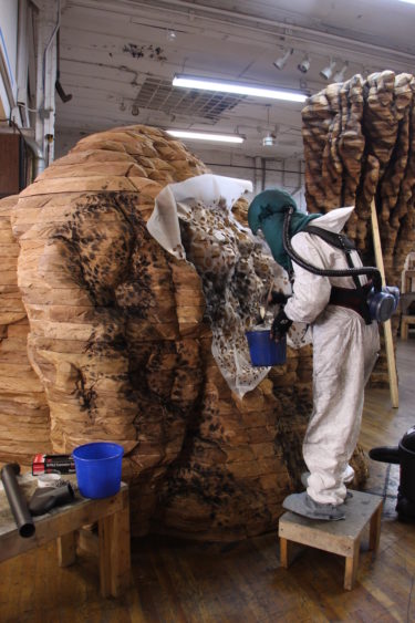 Each of the large-scale sculptures involves a labor-intensive, yet intuitive, process that can take nearly a year to complete. Wearing safety gear and wielding heavy machinery, von Rydingsvard and her team saw, slice, stack, glue, and mark the works with graphite before assembling their final forms. Towering vertical structures, sprawling floor-based works, and expansive wall constructions inspire awe and introspection. *