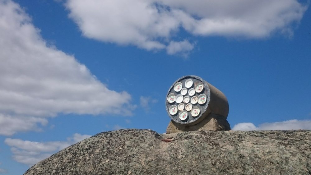 With this in mind, not far from VOAEX, El muerto que tiene sed [The Thirsty Dead Man] (1978) plays with a discretion that is far from being devoid of defiance: a metallic cylinder, painted in black, the circular base of which is lined with a series of plates. The concept is hermetic, just like the shape of the sculpture. A more thorough research reveals that, in reality, this cylinder is a gigantic container of thoughts. In 1978, the year of the inauguration, a hole in the cylinder allowed the audience to slip their head inside and reflect on the nature of the artwork. The hole was later sealed, and will only be reopened 5000 years after the date of installation. Only then will the thoughts that were locked inside be released. The meaning of the plates remains to be explained – maybe the announcement of a banquet; a table about to collapse under the force of gravity and smash to pieces onto the hard granite; a reference to the void, hunger and thirst that follow death and to the illusory needs that we encounter through life?