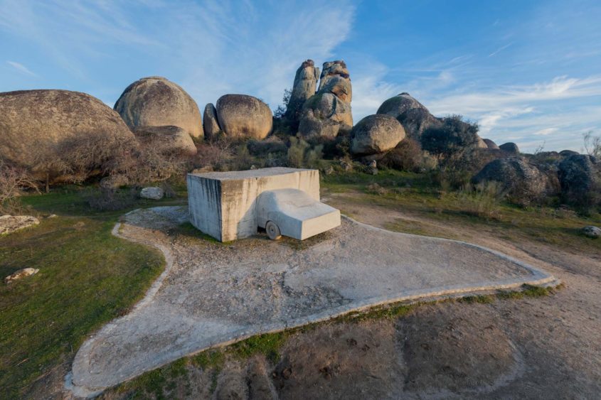 Certainly under the influence of his spouse Mercedes Guardado Olivenza, who was native to the region, Vostell discovered Extremadura at the end of the 1960s and referred to the granitic chaos as “a natural work of art”. The Vostell Malpartida Museum officially opened in 1976 with the inauguration of VOAEX (Viaje de (H)ormigón por la Alta Extremadura [Car in Concrete] – a concrete outdoor sculpture installed among the gigantic granite rocks.