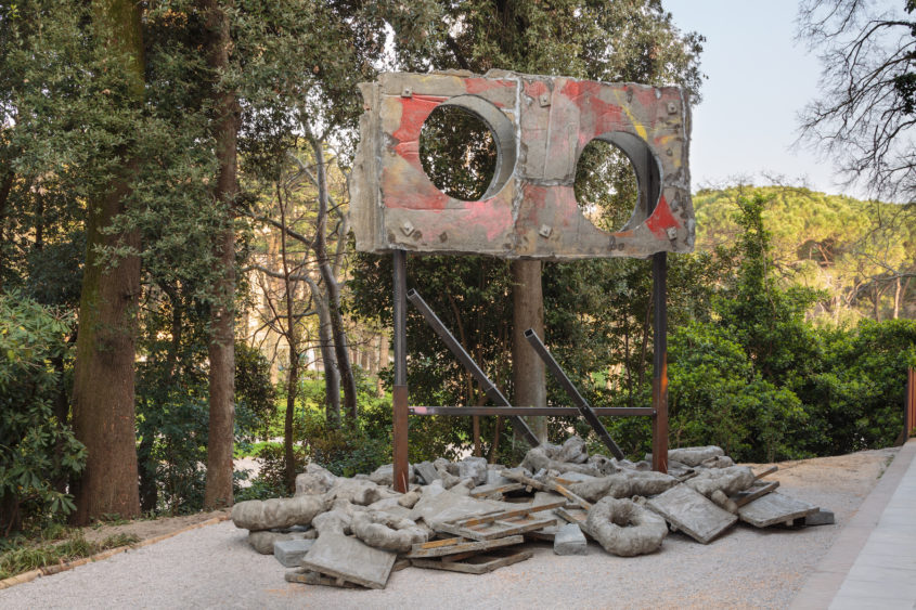 La High Line (New York) dévoile courant mai prop, une sculpture monumentale de Phyllida Barlow, première commande d’art public aux Etats-Unis de l’artiste anglaise. Située au niveau de la 16e rue, sur un ancien embranchement ferroviaire – mémoire du passé industriel du quartier – prop (2017) est une sculpture en bois de construction, plâtre, polystyrène expansé, tissus et autres matériaux de récupération mesurant une dizaine de mètres de haut. Comme souvent dans la pratique artistique de l’artiste, il s’agit de la recontextualisation d’une œuvre déjà existante. Dans ce cas, prop faisait partie de l’ensemble de sculptures holedhoarding (2017), présenté au Pavillon Anglais de la 57e Biennale de Venise en 2017.