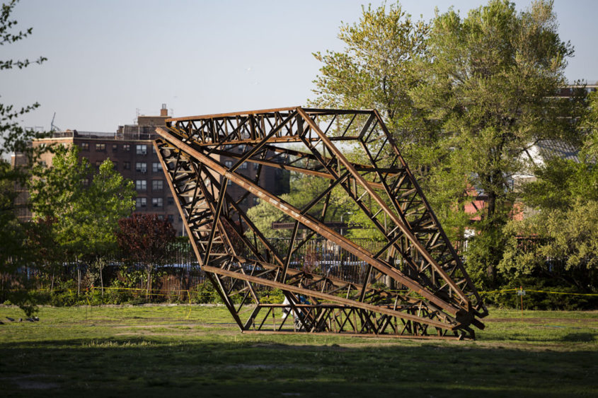 Virginia Overton investit le Socrates Sculpture Park avec des nouvelles œuvres créées spécialement pour l’exposition Built. L’artiste transforme des matériaux industriels d’usage commun, comme des poutres en bois, des éviers ou encore des fourgonnettes, en un ensemble de dix sculptures monumentales exposées sur la totalité du parc. Comme l’explique John Hatfield, directeur exécutif du Socrates, « Les nouvelles œuvres de Virginia Overton font écho aux 30 ans d’histoire du Socrates Sculpture Park, marqués par la transformation, la valorisation et un travail acharné qui se poursuivent encore aujourd’hui. »