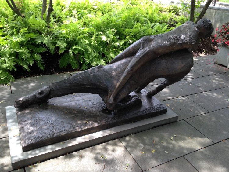 O.S. : La collection Wurtzburger a été en grande partie acquise par Alan et Janet Wurtzburger entre 1955 et 1973. Parmi les œuvres les plus anciennes on trouve un Balzac de Rodin et une figure allégorique de Fruit ou Pomone de Bourdelle. Parmi les plus récentes, on trouve un stabile de Calder et une pièce abstraite de Noguchi sur l’étang. La plupart des œuvres datent de l’après-guerre, comme un Marini, un Lipchitz et un Zadkine, qui font référence à la guerre. Le Zadkine, par exemple, est intitulé The Destroyed City, 1957 – une version plus petite du monument de Rotterdam. Les œuvres du Levi Sculpture Garden ont, quant à elles, été acquises entre 1960 et 1988. La plupart d’entre elles sont abstraites et plusieurs sont issues du mouvement minimaliste américain, avec des artistes comme Michael Heizer et Tony Smith. La plupart des œuvres sont des assemblages plutôt que des fontes de bronze avec une seule exception, une ravissante tête de hibou de Joan Miró.