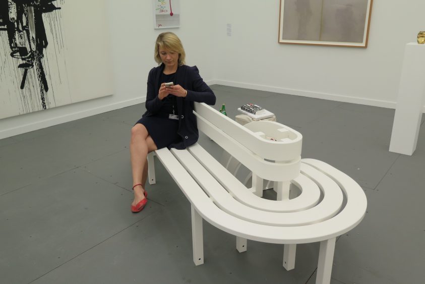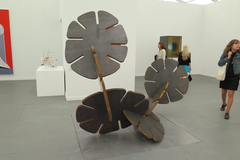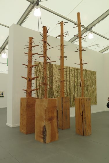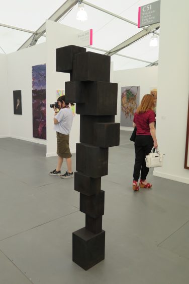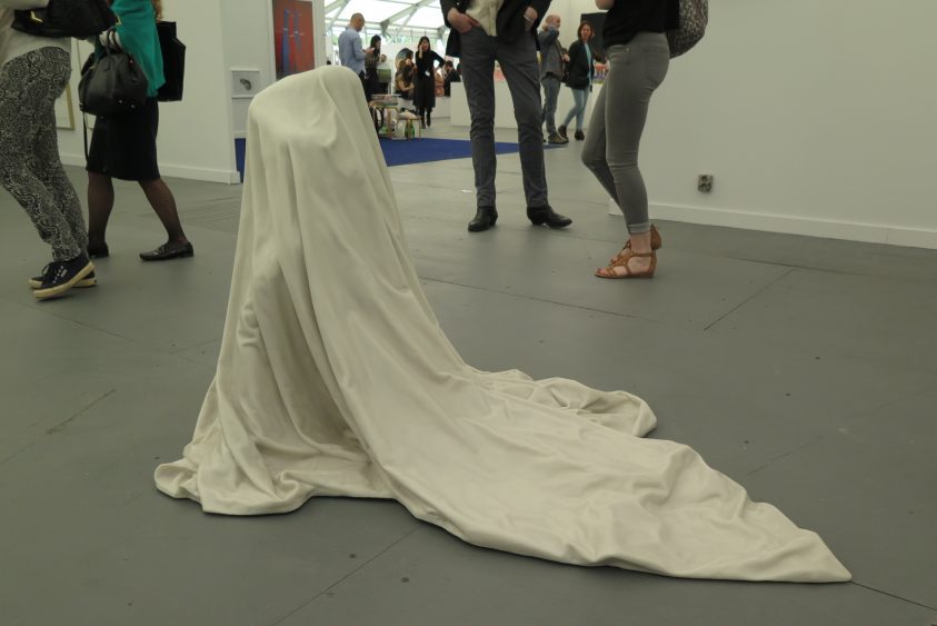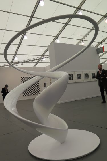 En débarquant dans cette petite île verdoyante, une tente blanche de plus de 400 mètres de long donne d’emblée l’ampleur de la foire : 198 galeries et 3 institutions à but non lucratif. L’agréable largeur des allées, la généreuse taille des stands, et la lumière du jour qui y pénètre permettent de se projeter facilement dans l’acquisition d’une sculpture ou installation. Contrairement à la foire de l’Armory Show en mars dernier où rien n’avait particulièrement attiré notre intérêt, nous vous présentons ici nos coups de cœur en images, notamment le travail de Rob Fischer à la galerie Derek Eller, une nouvelle série d’Antony Gormley, Stress à la galerie White Cube, et une improbable œuvre d’Ernesto Neto à la galerie Tanya Bonakdar.
