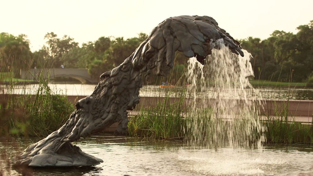 Pour finir, une vidéo fascinante proposée par Art21 sur la Vague de Lynda Benglis, l’artiste américaine dont on redécouvre récemment le travail avec bonheur, notamment grâce à deux expositions importantes en 2015 : une rétrospective à Hepworth Wakefield, Angleterre, au printemps dernier et une exposition d’œuvres en extérieur, dont plusieurs fontaines monumentales, à Storm King Art Center, dans l’état de New York aux Etats-Unis, qui se termine le 8 novembre. Cette vidéo revient sur une œuvre emblématique de Benglis et sa première fontaine, intitulée The Wave of the World (1983-84), créée pour la Louisiana World Exposition et ensuite disparue. Cette vidéo montre à la fois les origines de cette œuvre dans l’enfance louisianaise de Benglis, sa création et sa récente restauration à la fonderie Modern Art Foundry à Astoria, New York. Cette œuvre est aujourd’hui exposée dans le parc de la ville de La Nouvelle Orléans.