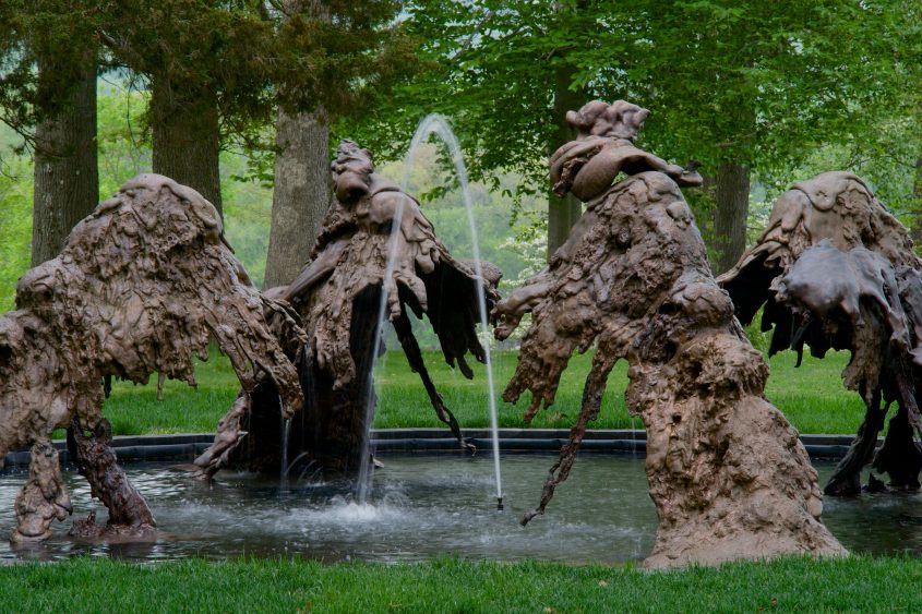 Le rôle de l’art public jouit aujourd’hui d’une petite histoire contemporaine, bien que certains artistes m’aient confié qu’il est très difficile, pour ne pas dire impossible, de vivre exclusivement de ces œuvres-là. Pourtant, le concept se révèle être un bon antidote à une approche entièrement privée et monétaire de ce que l’art peut accomplir. Les fontaines sculptures de Lynda Benglis ont été placées près de la maison qui sert de centre d’accueil et de galerie d’exposition ; elles constituent un exemple remarquable d’une vision résolument créative développée par l’artiste depuis des années. Il est d’autre part important de faire remarquer que ces œuvres pourraient être exposées en dehors des paysages verdoyants de Storm King ; elles s’intégreraient tout aussi bien à un environnement urbain, comme lieu de rencontre, où citadins et touristes peuvent apprécier à la fois un art « anti-formaliste » et l’élément aquatique, que Benglis a si bien su associer dans ces œuvres.