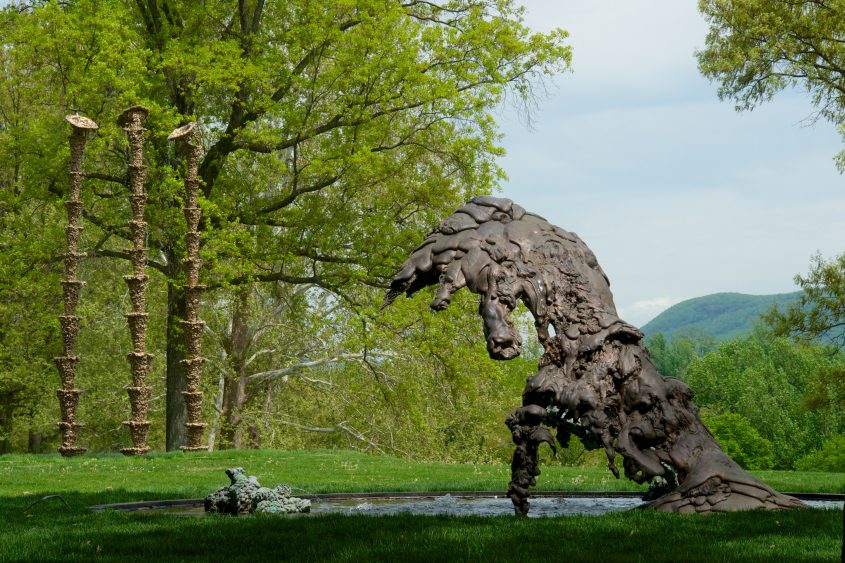 Situé à environ une heure au nord de New York sur un terrain bucolique de 200 hectares, Storm King s’est imposé depuis son ouverture il y a une cinquantaine d’années comme un grand centre de sculpture moderne. Ayant accueilli des œuvres d’artistes aussi renommés que George Rickey, Magdalena Abakanowicz, Mark di Suvero, and Zhang Huan, Storm King est un véritable terrain d’essai pour les esprits les plus créatifs de notre temps. La beauté pastorale du site n’est pas son seul attrait : il abrite une anthologie d’artistes internationaux dont la mission est de partager une vision, le plus souvent abstraite, selon laquelle les imaginations d’artistes, contemporains ou non, s’intègrent au paysage vallonné et aux clairières du parc. Aucun autre lieu aux Etats-Unis ne me semble avoir aussi parfaitement réussi à faire dialoguer le paysage et la créativité des artistes, dont les œuvres sont habituellement exposées dans les espaces bétonnés de la ville où elles se trouvent filtrées par l’ambition et l’argent.