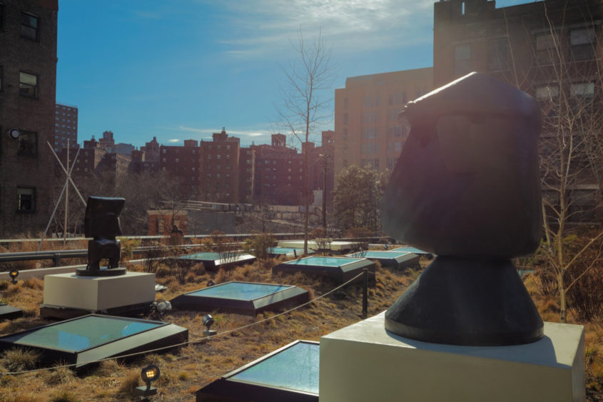 Le 10 octobre dernier, la galerie Paul Kasmin (509 W 27ème rue, New York) a inauguré un nouvel espace d’exposition sur le toit de l’immeuble avec trois sculptures monumentales de Joel Saphiro. Baptisé Kasmin Sculpture Garden, ce jardin suspendu est destiné à accueillir des expositions temporaires, tout le long de l’année, visibles depuis la High Line – fameuse promenade urbaine aménagée sur une portion désaffectée des anciennes voies ferrées aériennes du Lower West Side.