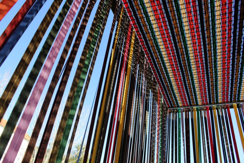 Avec Trianons (2012), Joana Vasconcelos adapte les pavillons des promenades royales et aristocratiques, strictement réservés à ces classes sous l’ancien régime absolutiste, et les offre à tous les visiteurs du parc. Les rubans plastiques et bariolés animent l’espace et résistent à la fois au temps et aux jeux de ceux qui s’y cachent et s’y emmêlent, constituant une œuvre qui est, très probablement, une des plus intéressantes de l’artiste, en raison de sa dimension historique et subversive.
