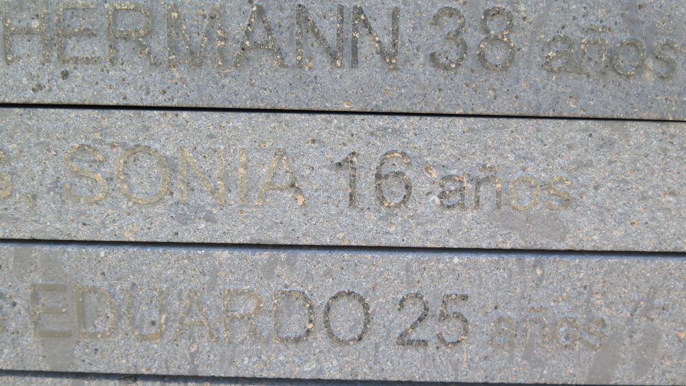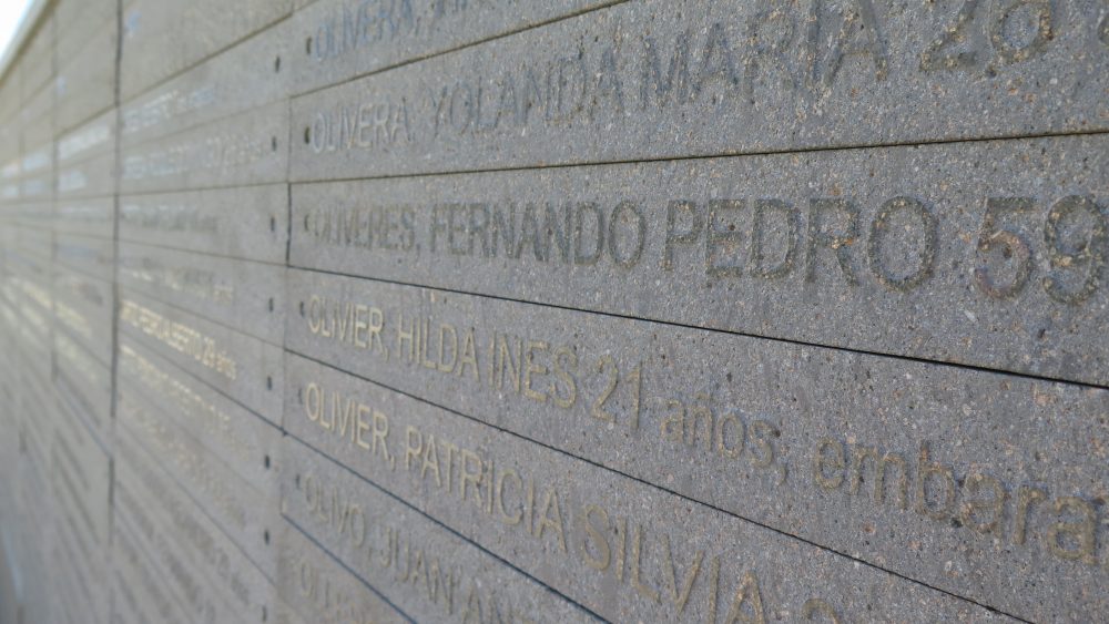 Il abrite également un musée ainsi qu’un imposant Mémorial aux Disparus. Œuvre d’art en lui même, ce long mur en granit noir ou gris selon la lumière zigzague à la fois vers le ciel et la mer, inscrivant dans ce paysage épuré comme une grande cicatrice. Sur ce granit, classés par année et par ordre alphabétique, sont gravés les noms des trente mille disparus et leurs âges : de 14 à plus de 80 ans, la majorité entre vingt et trente ans. Selon l’angle et le jeu d’ombre et de lumière, les noms disparaissent ou réapparaissent.
