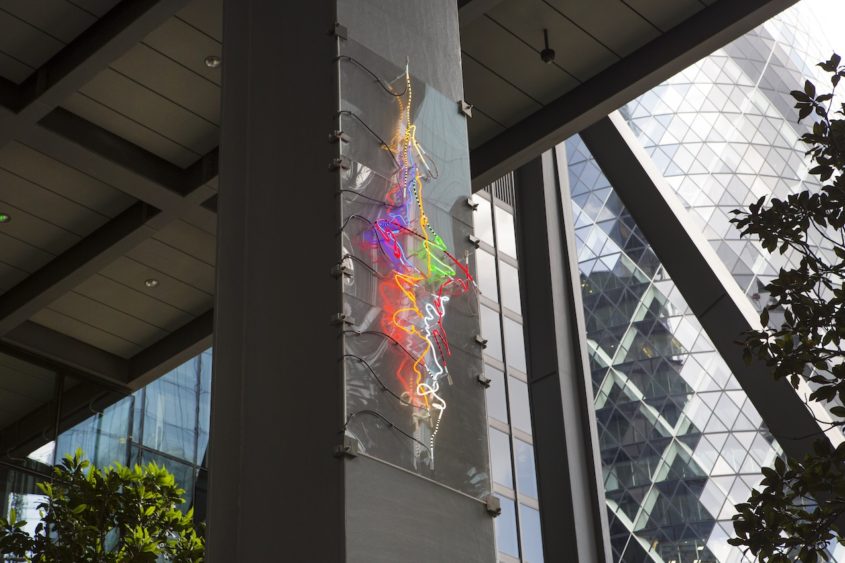 Vous avez encore quelques mois pour découvrir la septième édition de Sculpture in the City, un projet d’exposition à ciel ouvert dans la Cité de Londres. Dix-huit sculptures monumentales d’artistes contemporains intègrent l’espace urbain de la Cité, transformant temporairement l’architecture spectaculaire qui les entoure. Dans cette édition, vous retrouverez, entre autre, Daniel Buren et les jeux de lumières de ses pergolas colorées ; les formes organiques de l’artiste écossaise Mhairi Vari, qui rappelleront des nids d’abeilles suspendus aux éclairages publics ; ou encore les rochers volcaniques de l’artiste mexicain Bosco Sodi, provenant du volcan de Ceboruco (Mexique) et retravaillés par l’artiste à très haute température.
