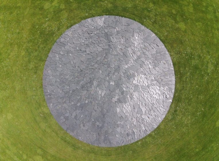 Déjà présent dans le jardin de sculptures du château avec Full Moon Circle (2003), Richard Long revient à Houghton Hall avec l’exposition Earth Sky. Fidèle au principe du travail avec les matériaux trouvés sur place, Long réalise une nouvelle série d’œuvres in situ avec du kaolin, des racines d’arbres, des pierres et de l’ardoise, toujours en évoquant des formes primitives comme la spirale, la croix, la ligne ou le cercle.